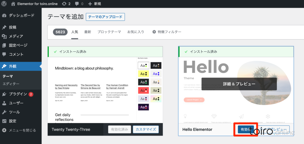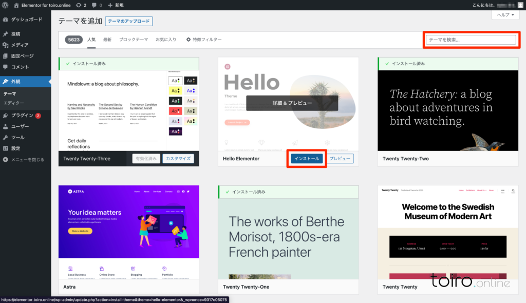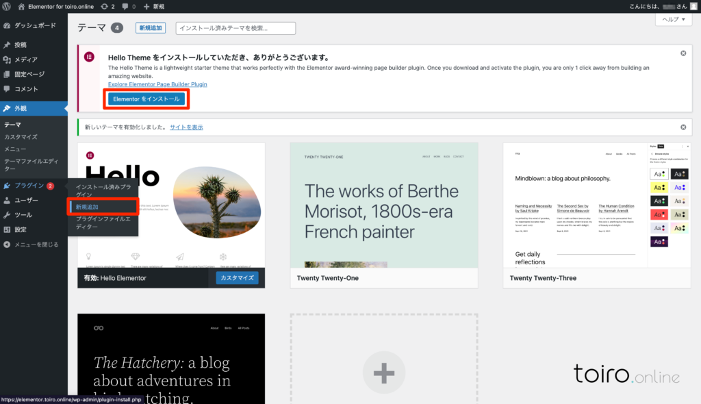 Elementorに最適なWordPressテーマ「Hello Elementor」をインストールする