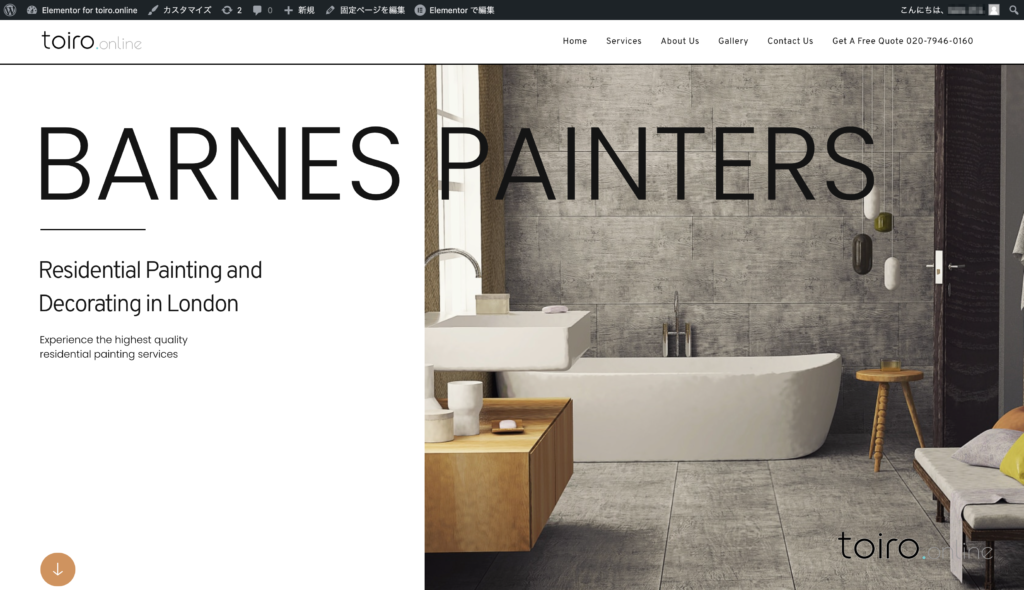 WordPressをインストールした直後のイメージから洗礼されたWEBサイトがElmentorだけで簡単に生成されました。ページにアクセスすると、アニメーション効果もあり、リッチなWEBサイトとしてElementorの様々な機能を駆使して作れている事が伺えます。